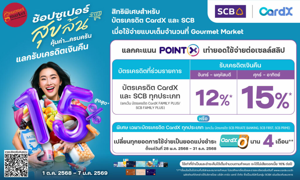 บัตรเครดิต CardX แลกรับเครดิตเงินคืนสูงสุด 15%