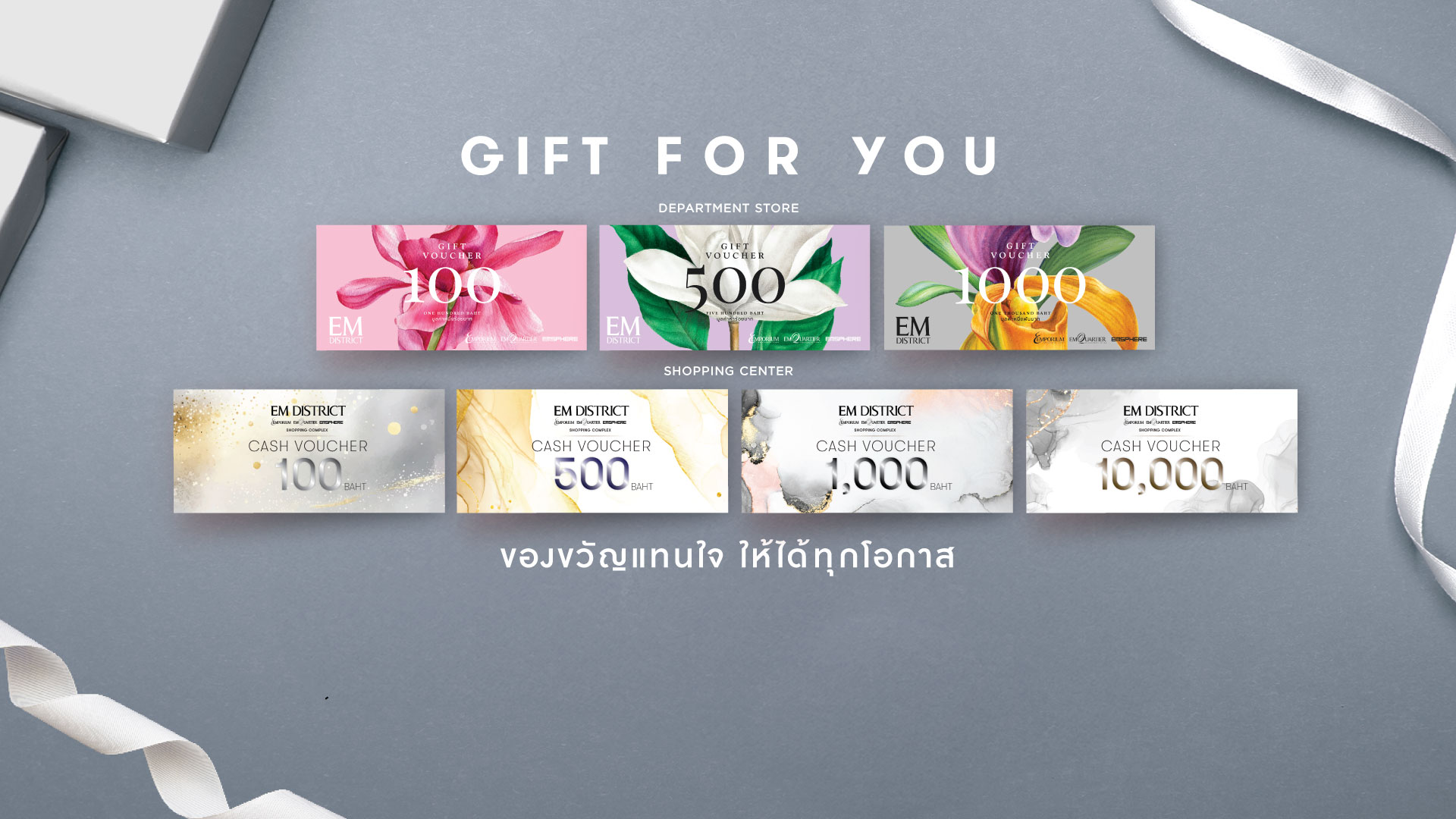 - คูปองแทนเงินสดใช้ชำระค่าสินค้ากับร้านค้าที่เข้าร่วมรายการภายในศูนย์การค้า เอ็มโพเรียม, เอ็มควอเทียร์ และเอ็มสเฟียร์ ยกเว้น ห้างสรรพสินค้า และ Gourmet Market