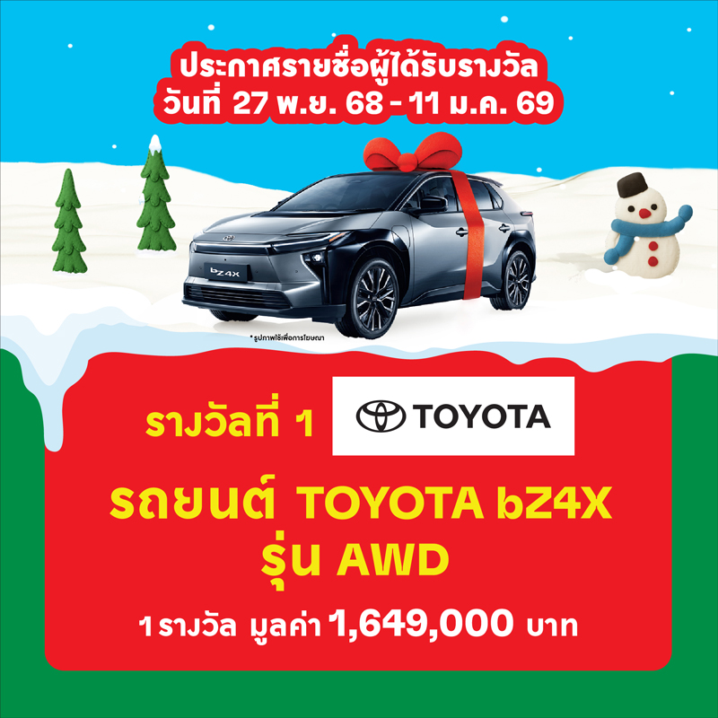 รางวัลที่ 1 รถยนต์ TOYOTA bZ4X รุ่น AWD จำนวน 1 รางวัล มูลค่า 1,649,000 บาท
