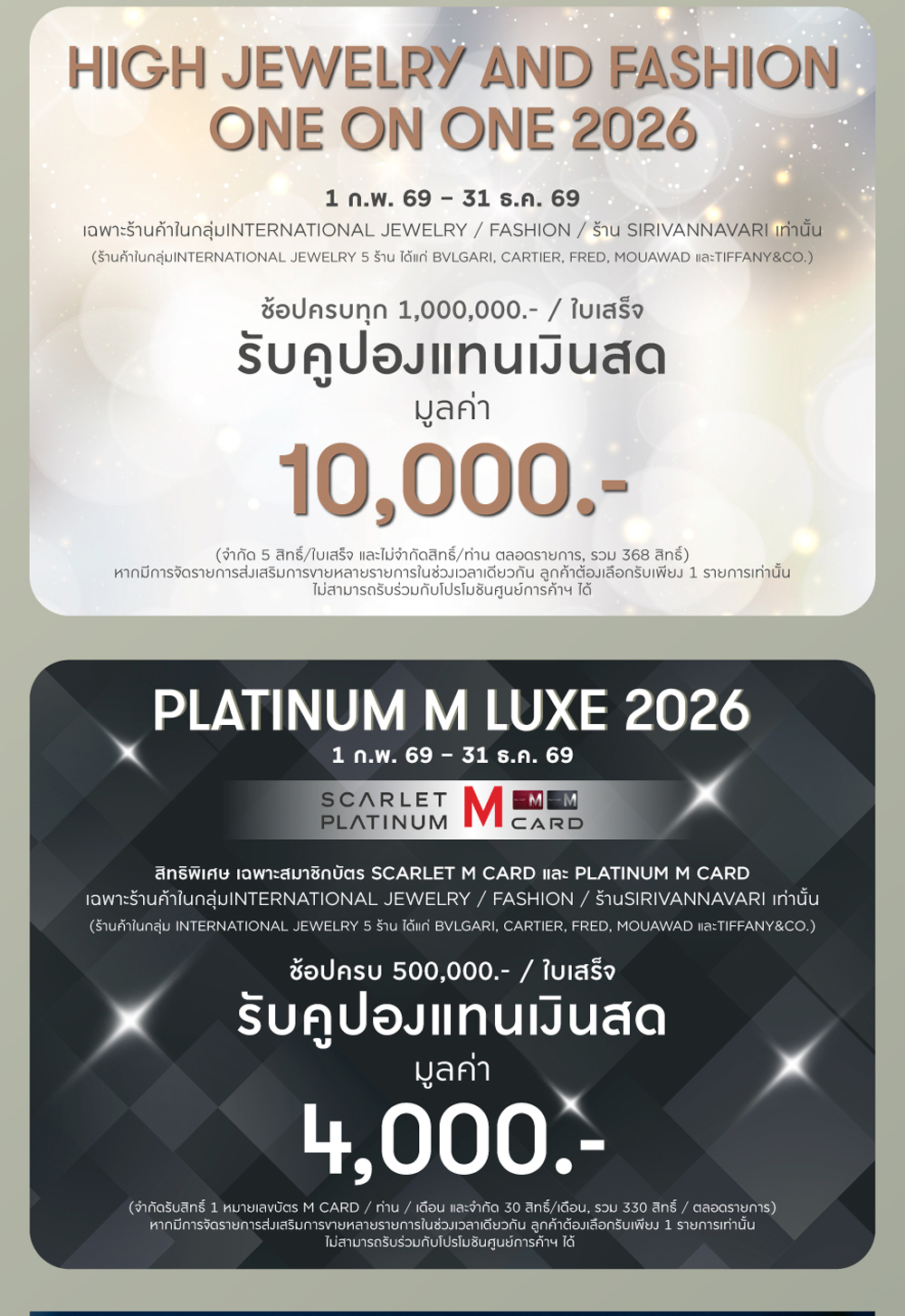 - เงื่อนไขทั้งหมดเป็นไปตามที่ธนาคาร และศูนย์การค้าฯ กำหนด