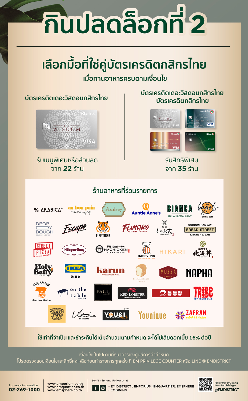 - โปรดตรวจสอบรายละเอียดเพิ่มเติมที่ EM PRIVILEGE COUNTER หรือ Line @EMDISTRICT